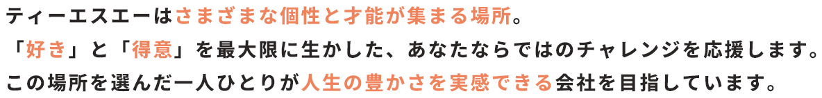 ティーエスエーはさまざまな個性と才能が集まる場所。